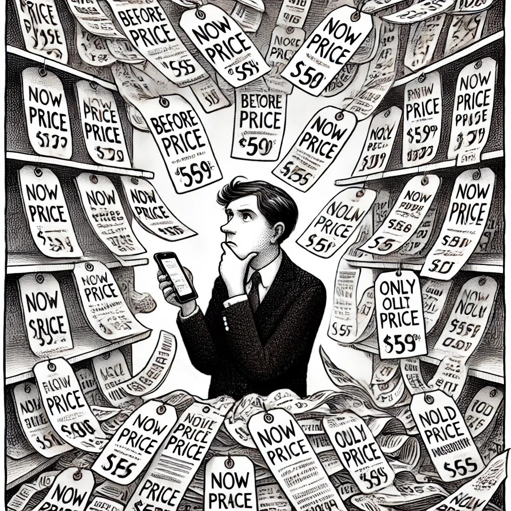 Eksempel: Ett par sko er på salg til 500 kr (50% av førpris 1000 kr) i seks uker. Etter seks uker erstattes prisen med 50% cashback-bonus den nye prisen 1000 kr. Dette vil være ulovlig.
