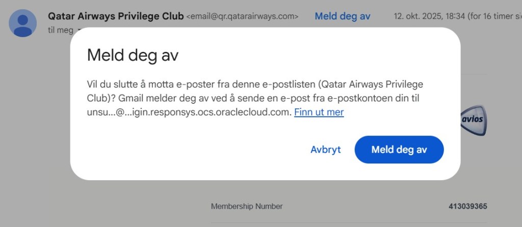 Blant annet ser vi unsubscribe-header rett ved avsenders navn. Jeg har brukt den selv flere ganger, og det føles faktisk godt. Jeg ble endelig kvitt en kaffekjede i Italia jeg besøkte i 2017 og mange andre meningsløse utsendelser.