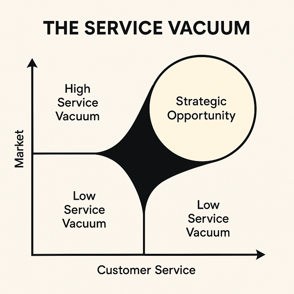 High Service Vacuum oppstår når forventet kundeservice i en bransje er blitt så lav; gjennom selvbetjening, automatisering, ansvarsforskyvning og fravær av menneskelig kontakt, at selv små handlinger av faktisk service oppleves som overraskende verdifulle.